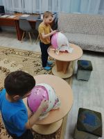 В отделении дневного пребывания ГКУ «Социальная защита населения по Темниковскому району РМ» проходит занятие в технике «папье-маше».