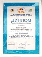 На XVI Всероссийском форуме «Вместе – ради детей! Быть рядом!» (23-25 сентября), организованным Фондом поддержки детей, находящихся в трудной жизненной ситуации совместно с Правительством Ульяновской области, делегация Республики Мордовия признана лидером в номинации «Помощь детям в особых жизненных ситуациях, формирующих психоэмоциональную травму».