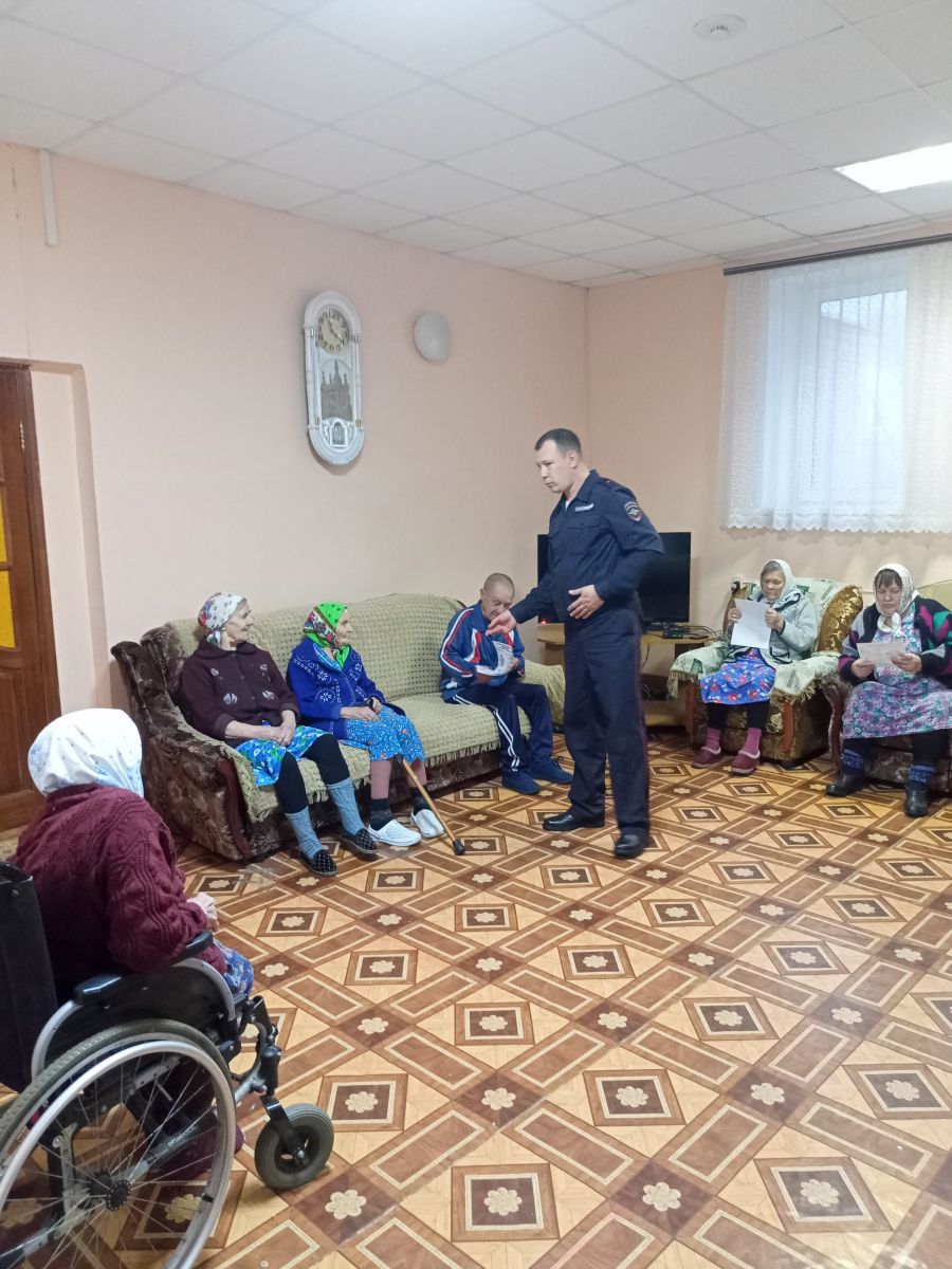 Сегодня, в единый день профилактики терроризма в Республике Мордовия, в Большеигнатовском доме-интернате для престарелых и инвалидов, майор полиции Кудашкин Андрей Александрович, участковый уполномоченный ПП №7 (по обслуживанию Большеигнатовского района) ММО МВД России «Ичалковский» провел разъяснительную беседу.