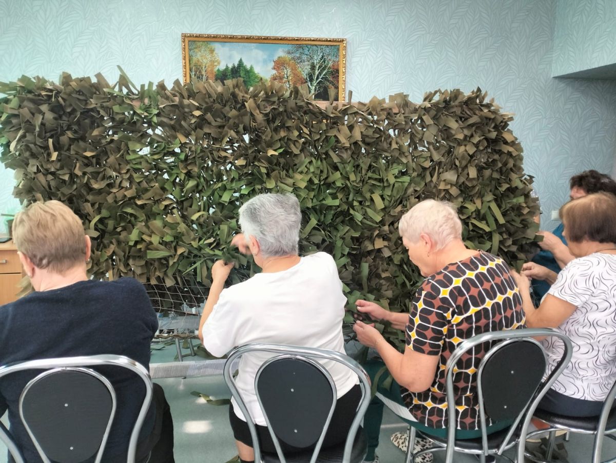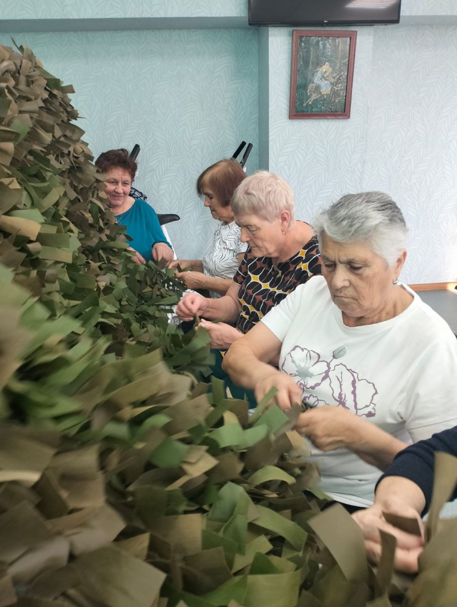 Получатели социальных услуг отделения дневного пребывания для граждан пожилого возраста и инвалидов ГКУ «Социальная защита населения по Зубово-Полянскому району РМ» п. Зубова Поляна продолжают плести маскировочные сети для СВО.
