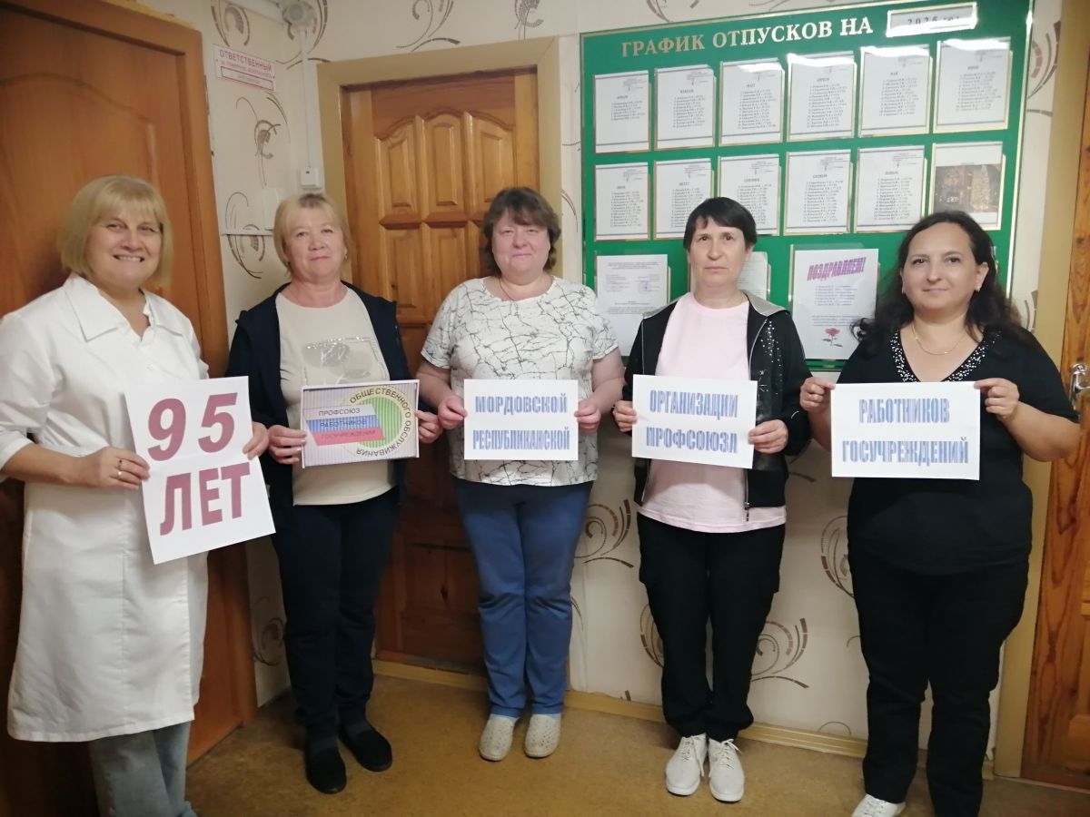 В честь 95-летия Мордовской республиканской организации профсоюза работников государственных учреждений и общественного обслуживания РФ профком ГБСУСОССЗН РМ «ПУркаевский психоневрологический интернат» присоединился к флешмобу и поздравил членов профсоюза, активистов, ветеранов профсоюзного движения с юбилейной датой.