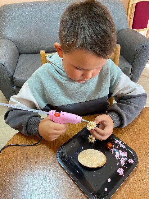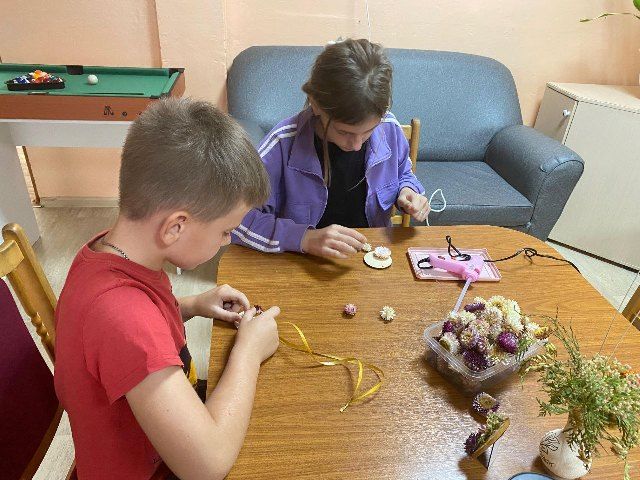 Под руководством опытного педагога ребята с увлечением выкладывали сухие цветы на основу и приклеивали их, проявляя свою фантазию и креативность.