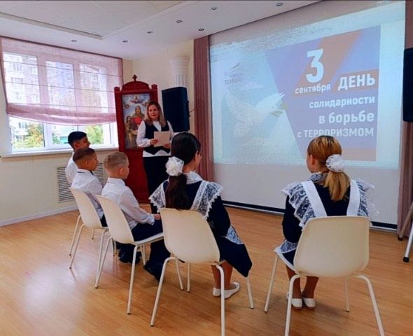 Педагог-психолог Н.Н. Жданкина поделилась с детьми информацией о захвате школы в Беслане террористами, когда в заложниках оказались более тысячи человек, включая множество детей. Она рассказала о трех днях страданий и испытаний, выпавших на долю заложников, а также о героизме тех, кто противостоял преступникам. Для лучшего понимания масштаба произошедшего, рассказ сопровождался показом видеоматериалов.