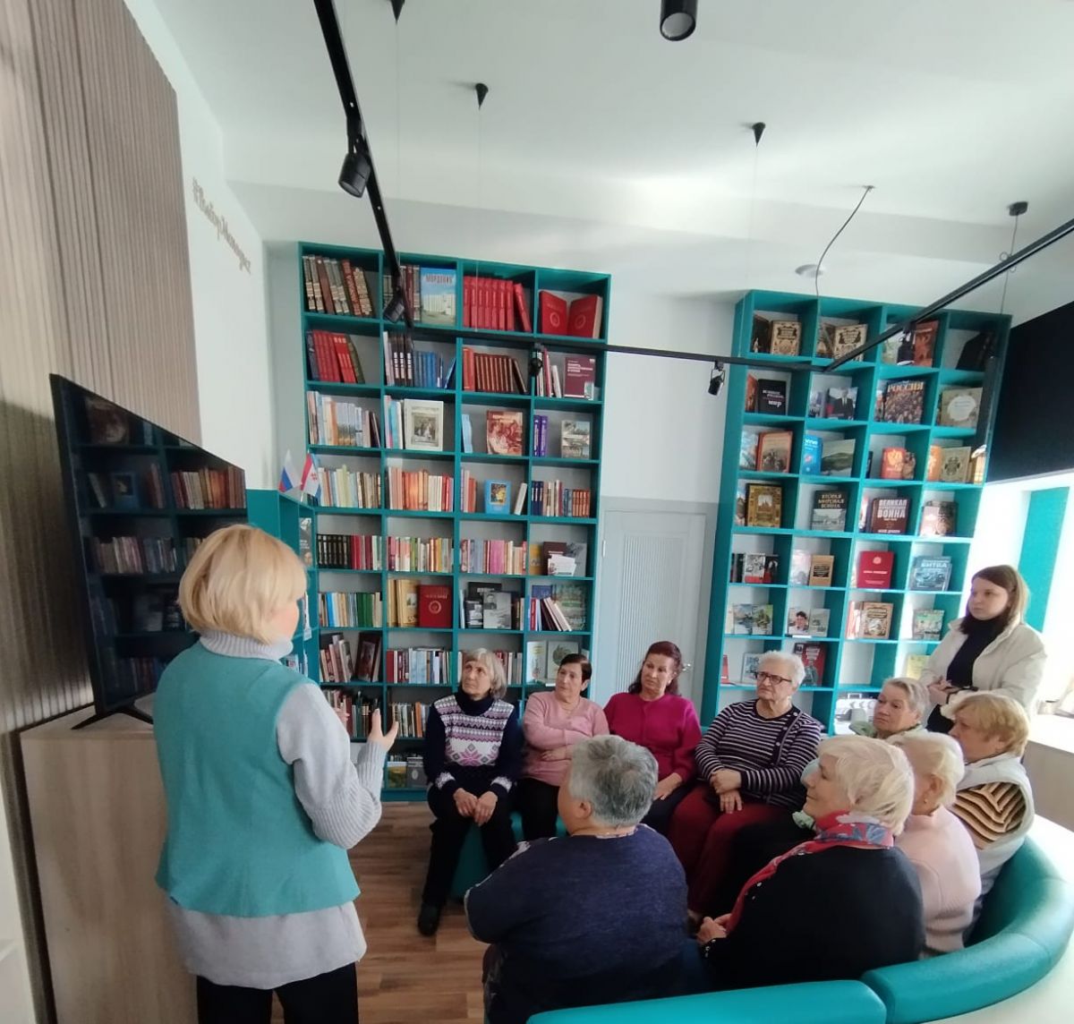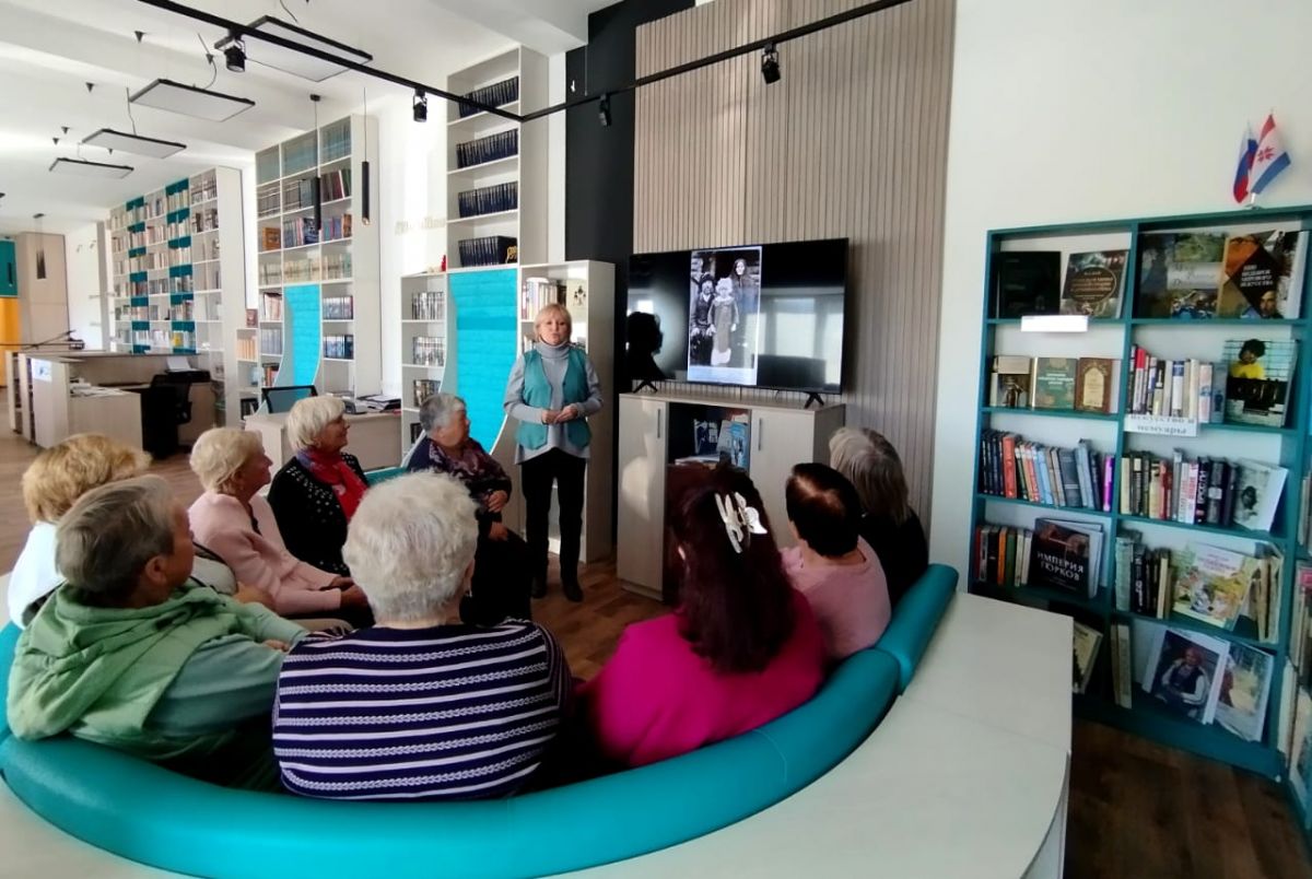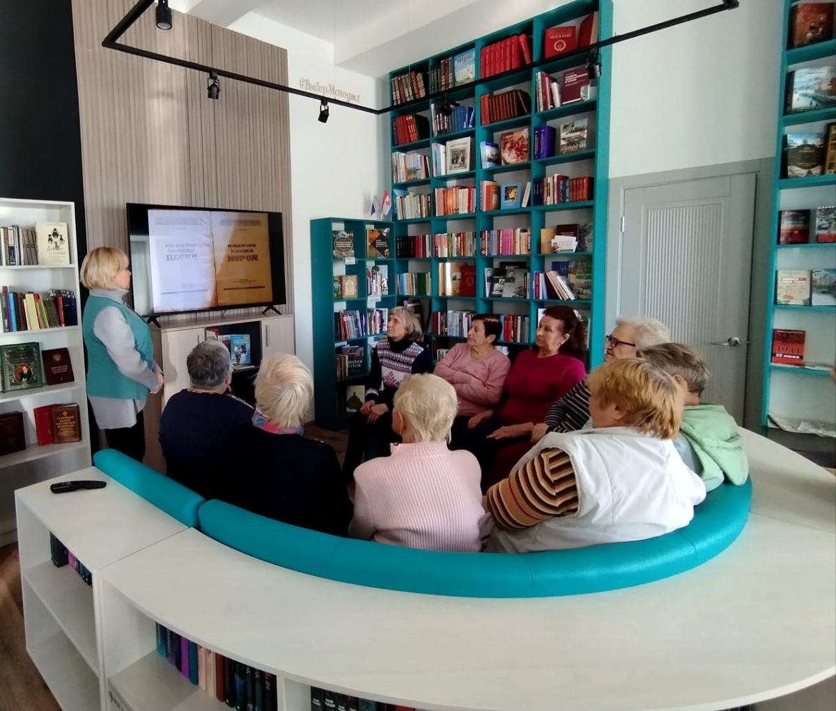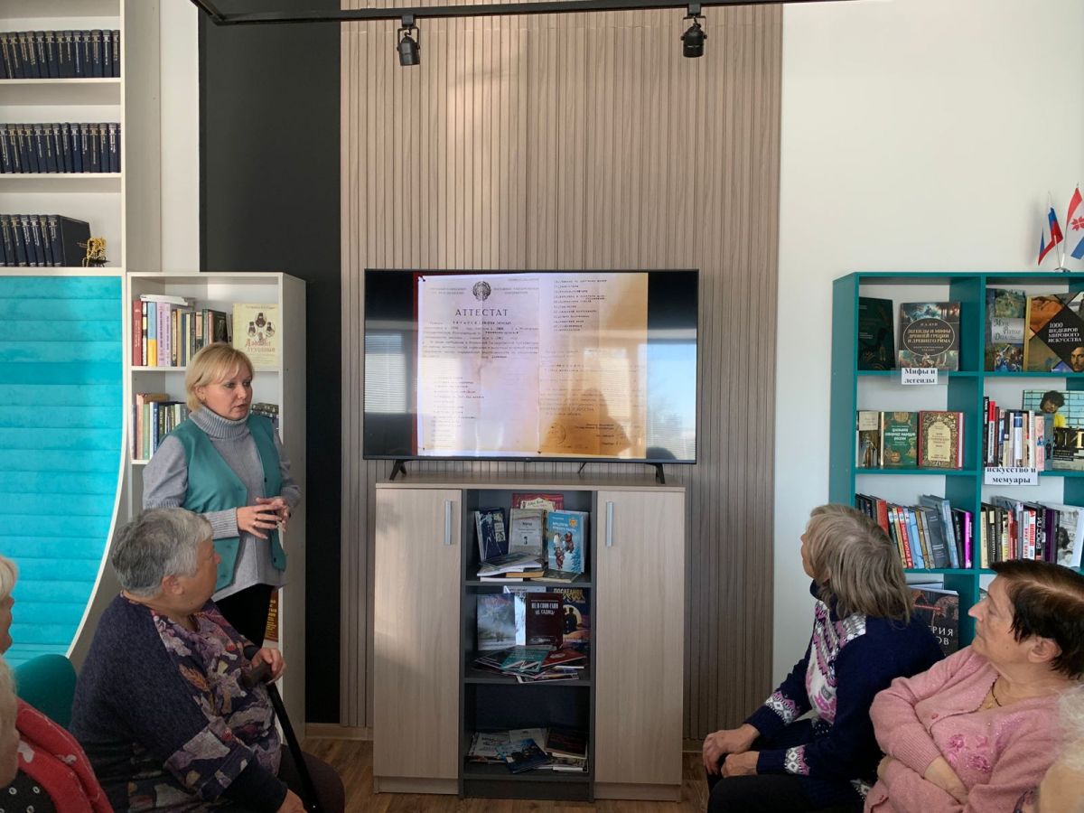 Библиотекарь Касаткина И.А. подробно рассказала о жизненном пути и профессиональных достижениях Кирюкова, сопровождая рассказ показом фотографий.