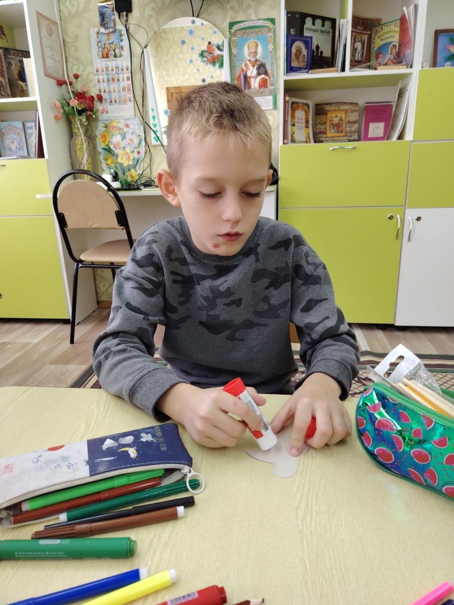 После беседы перешли к творческому этапу. Ребята с увлечением вырезали, клеили, раскрашивали. Каждый старался внести свой вклад в общее дело. Атмосфера была дружелюбной и творческой. В процессе работы они обсуждали, как лучше расположить элементы на плакате, какие цвета использовать, чтобы он получился ярким и запоминающимся.