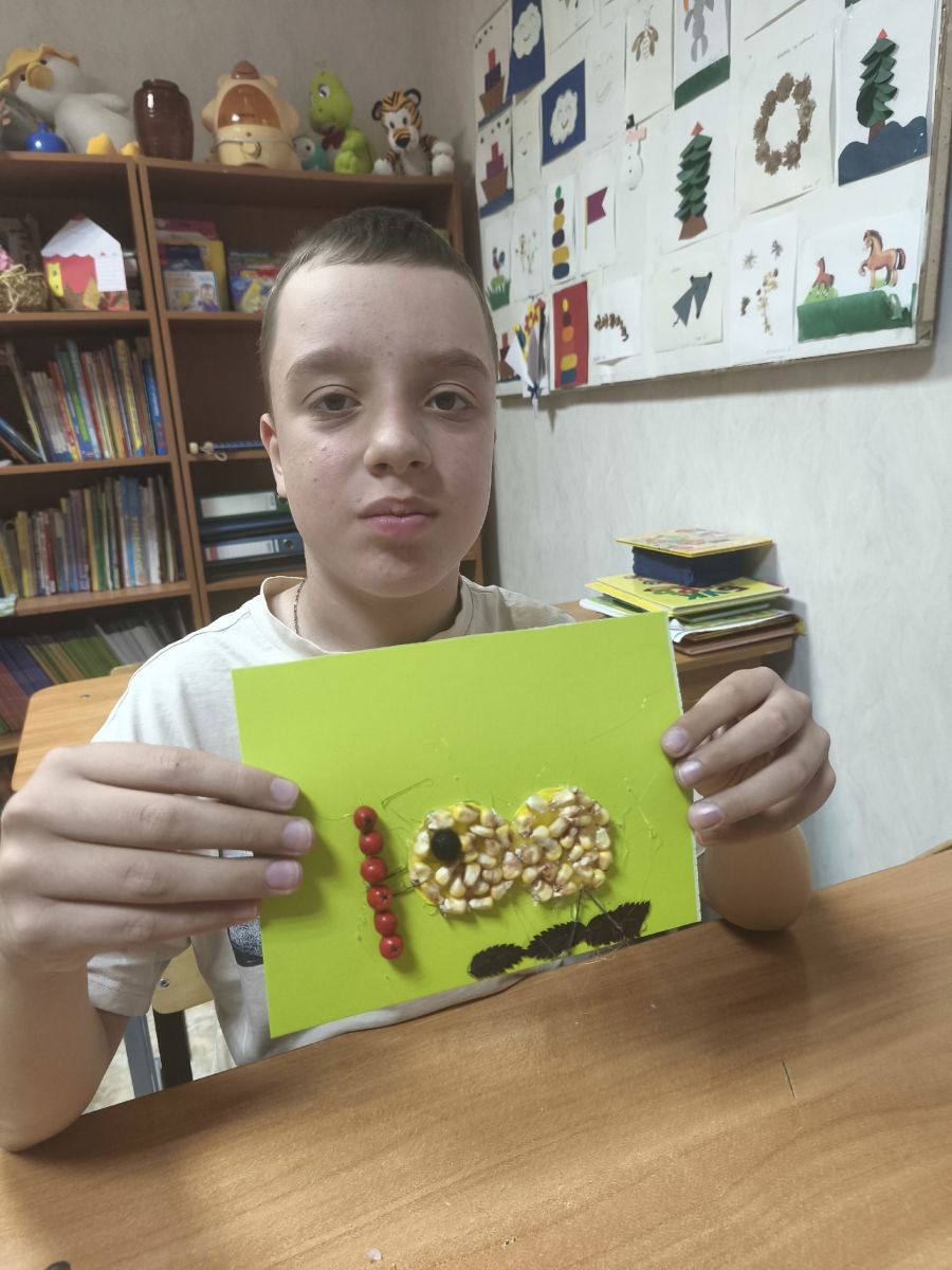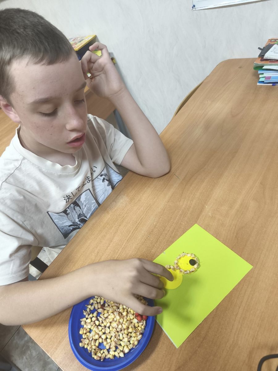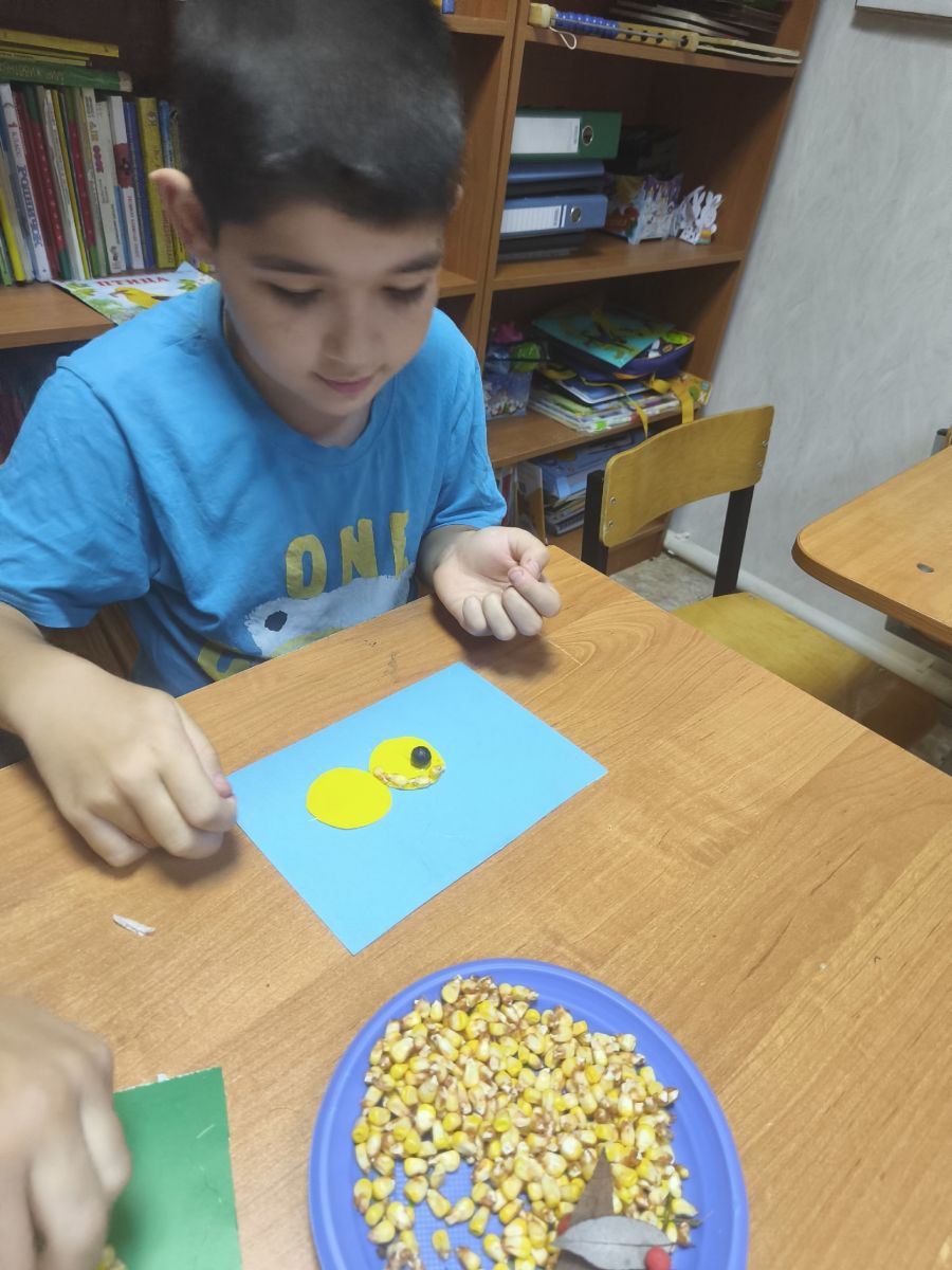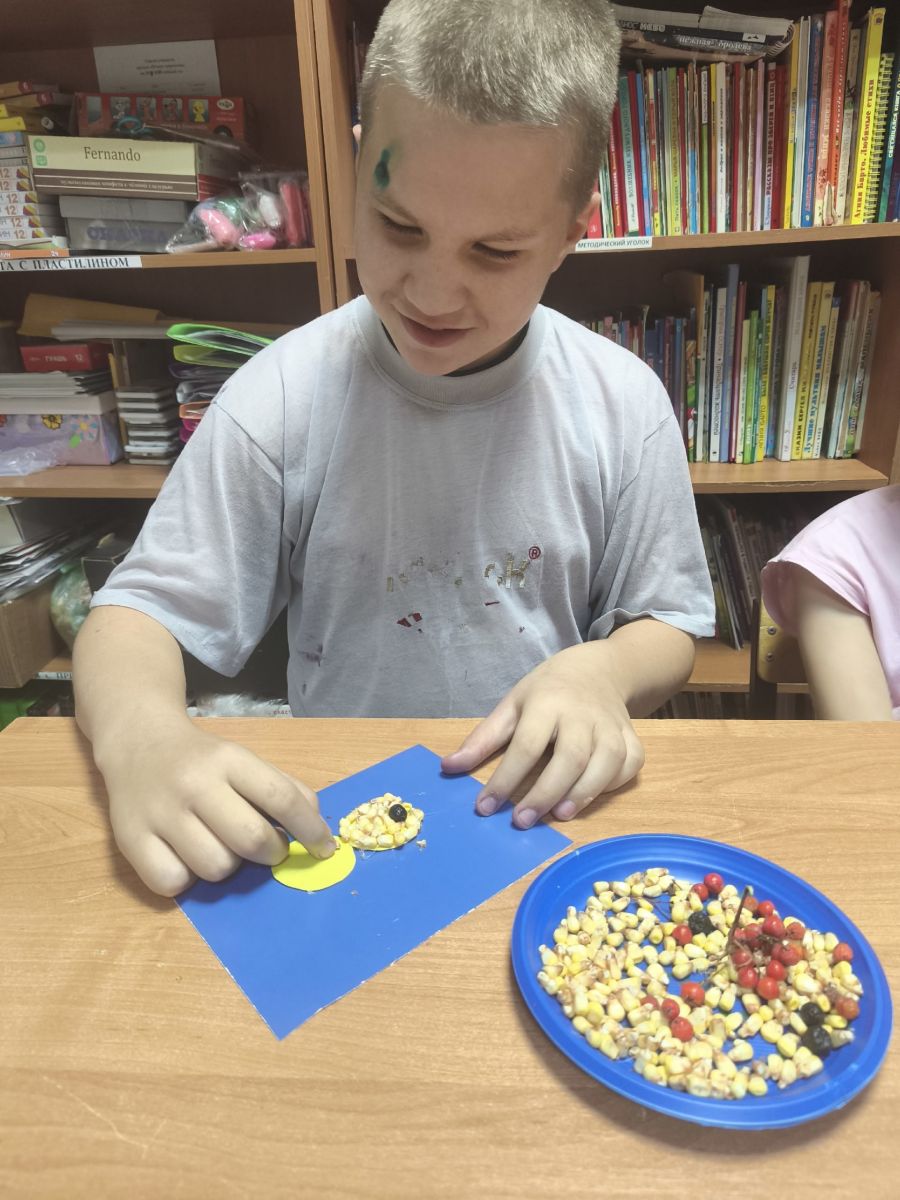 обучающая: Обучение детей умению создавать композицию в аппликации из пшена, располагать предмет на листе бумаги.