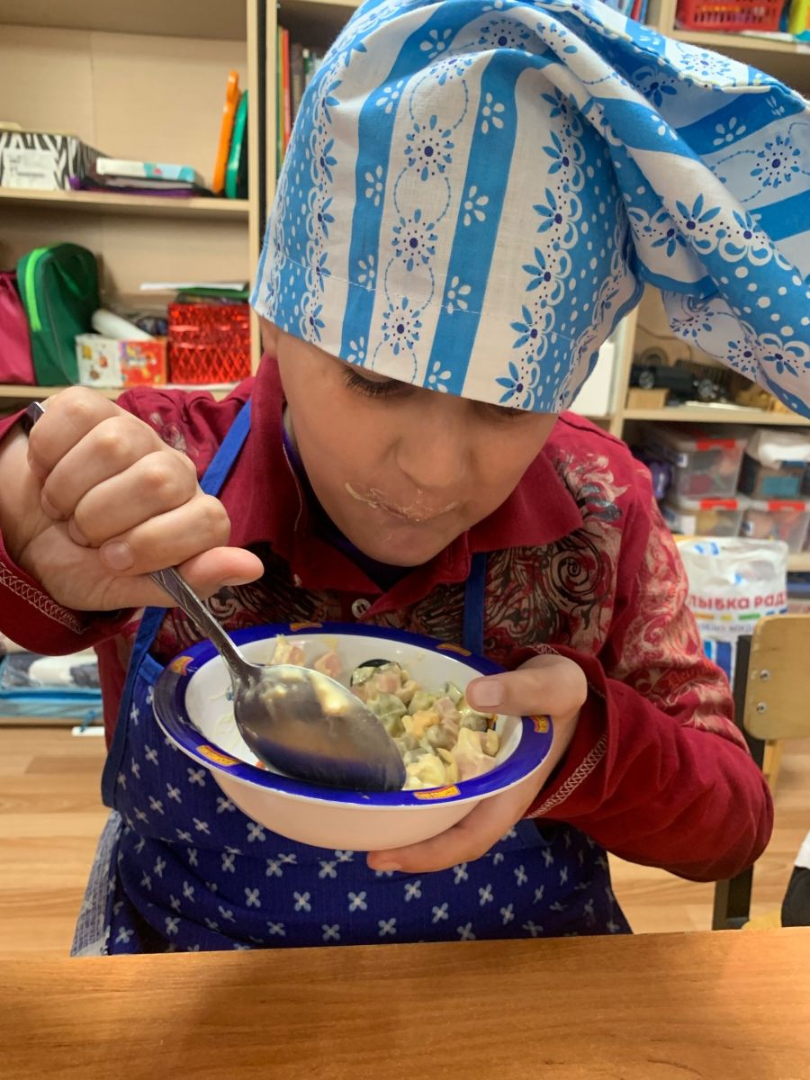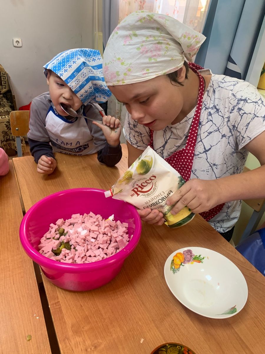 Формировать знания и умения по приготовлению салата «Оливье» классического с колбасой ; упражнять нарезание овощей кубиками и правильному пользованию инструментами .