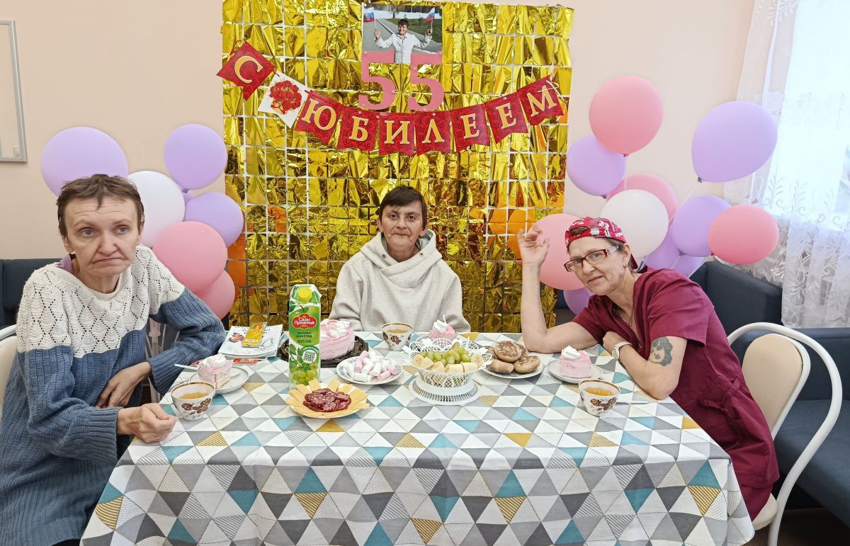 Это праздник веселья, радости, моря добрых слов, чудесных подарков и счастливых воспоминаний. В ГБСУ СОССЗН РМ «Старотештелимский психоневрологический интернат» сегодня отметила свой юбилей 55 лет проживающая Чабан Анжелика Владимировна. За празднично накрытым столом друзья поздравляли именинницу, дарили добрые пожелания, пели песни. Такие мероприятия обеспечивают получателям социальных услуг хорошее настроение и эмоциональную зарядку.