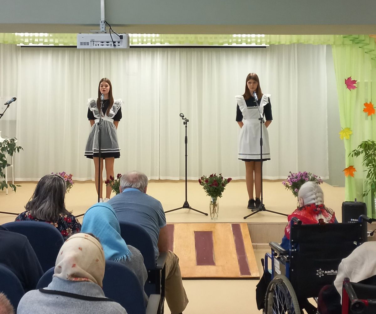 В рамках месячника пожилых людей волонтёры Учхозской средней общеобразовательной школы провели концерт для жителей Заречного дома-интерната.
