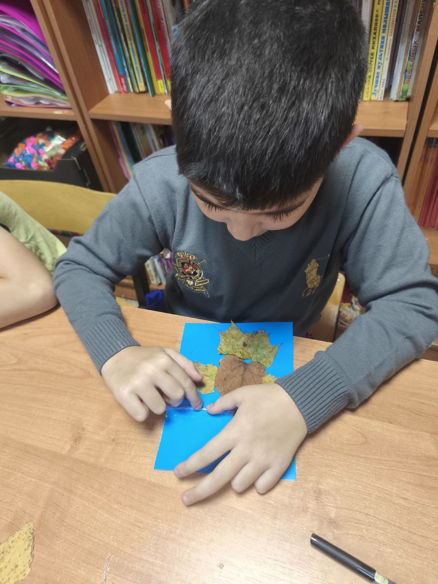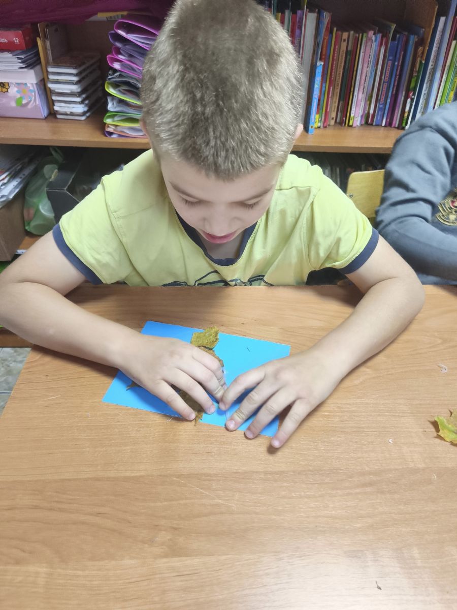 Аппликация рыбка из листьев