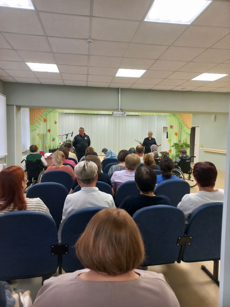 20.10.2025г в Заречном доме – интернате в рамках проведения Единого дня профилактики терроризма в Республике Мордовия состоялась встреча сотрудника участкового уполномоченного полиции ММО МВД России «Краснослободский» майор полиции Шумилкина Сергея Анатольевича и дознавателя капитан полиции Пимочкиной Марии Станиславовны с сотрудниками и получателями социальных услуг.