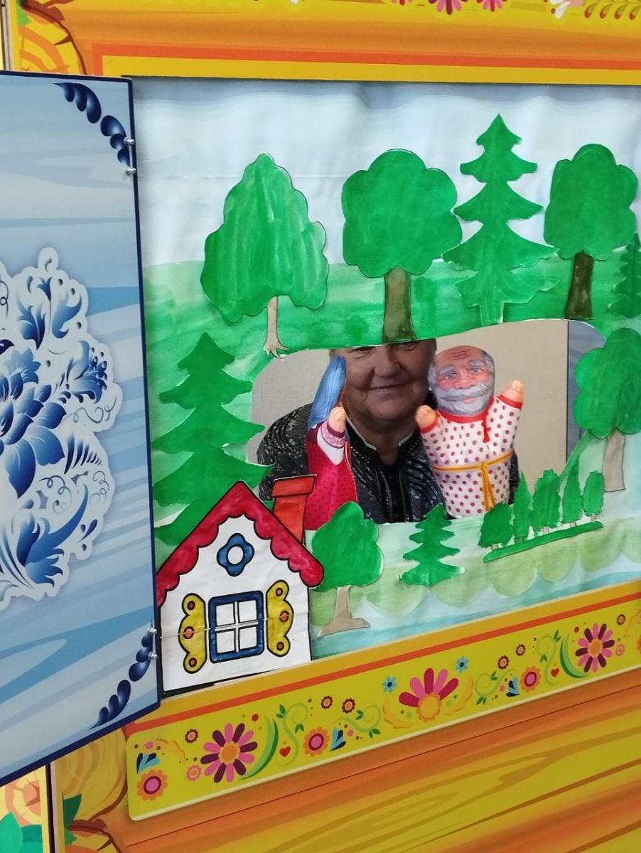 В благодарность за поздравление, пожилые люди показали дошкольникам кукольный спектакль по сказке "Колобок". Ребята внимательно следили за сюжетом и переживали за веселого колобка.