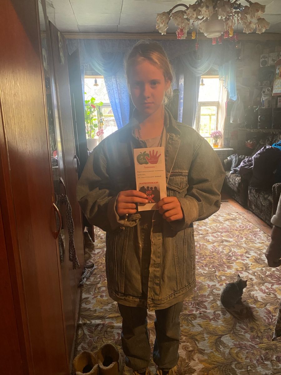 С целью профилактики негативных проявлений среди подростков проведена беседа «Нет наркотикам!», задача которой формирование у несовершеннолетних негативного отношения к наркотикам, повышение уровня информативности о последствиях употребления наркотических веществ и пропаганду здорового образа жизни. Вручен информационный материал.