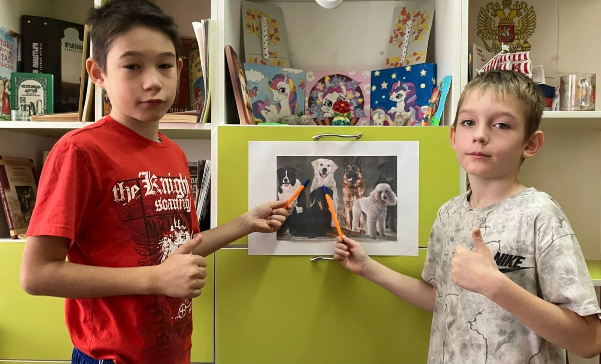 На этот раз ребята всех возрастных групп не стали делиться на команды, а образовали один общий и дружный круг! Вопросы викторины были самые разнообразные. Каждому участнику необходимо было отгадать по описанию и постараться правильно назвать ту или иную породу собак, выделить отличительные признаки и отметить черты, характерные для каждой породы. Также детям предстояло определить по внешнему виду собак, или, по-научному, их экстерьеру таксу, сеттера, чау-чау, чи-хуа-хуа, немецкого дога, афганскую борзую, хаски, бельгийского бладхаунда и других. Ребята узнали, что существуют различные виды собак: декоративные, служебные, ездовые, охотничьи. Дети рассказывали забавные истории из жизни своих домашних питомцев, называли их породы, клички, говорили о том, как они с любовью заботятся о своих четвероногих друзьях. Дети с удовольствием отвечали на все вопросы викторины. Особенно активно проявили себя Денис П, Данила П, Диана Б, Кристина К, Сережа С.