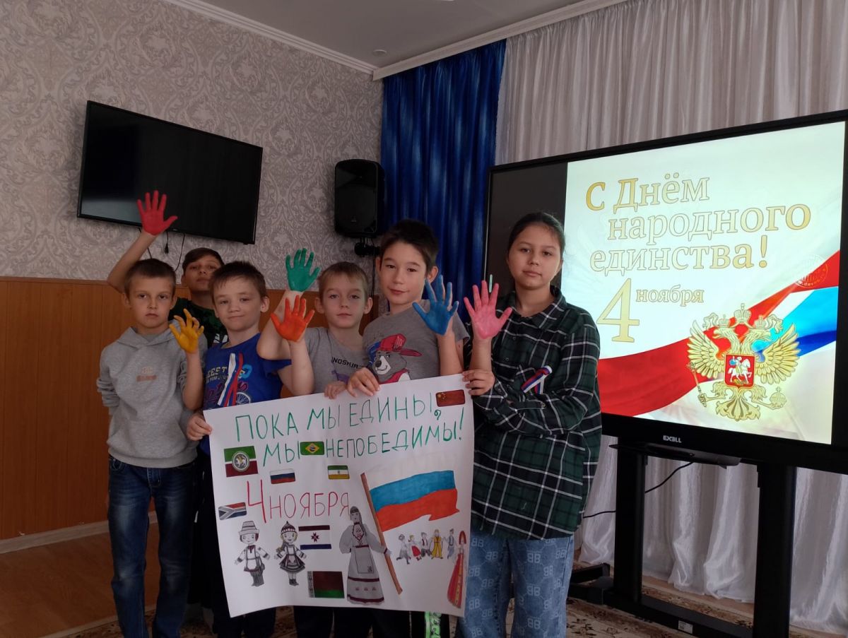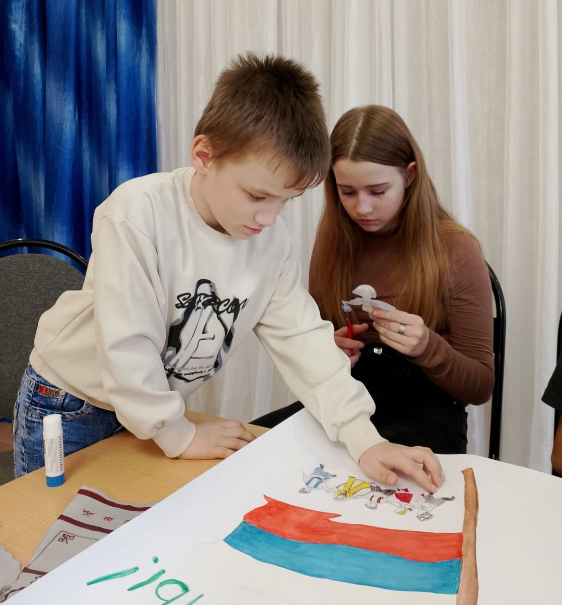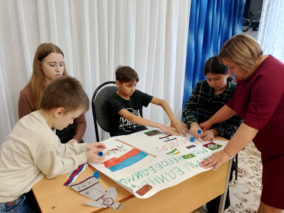 Завершающим этапом мероприятия стало создание общего плаката, посвящённого Дню народного единства. Ребята, вооружившись красками и кистями, воплотили свои мысли на большом листе бумаги. Рисунки, надписи и аппликации отразили их понимание единства как силы, позволяющей преодолевать любые трудности и строить сильную и процветающую страну. Плакат стал ярким символом их общего стремления к миру и согласию.