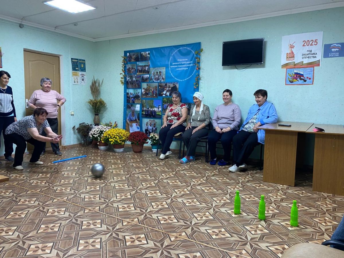 Пожилые люди разделились на две команды и с азартом соревновались, катая шары. Помимо приятного времяпрепровождения, такие мероприятия способствуют поддержанию активности, дарят заряд позитивных эмоций и жизненной энергии.