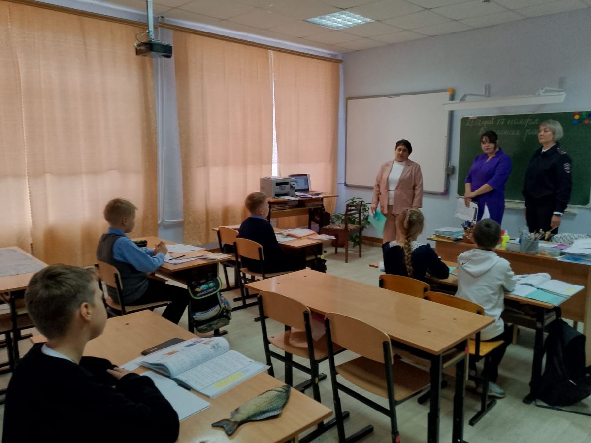 Профилактическую беседу провели заведующий отделением социальной помощи семье и детям – Тихомирова Ю.А., участковый уполномоченный полиции ОП №9 - Турчаева Т.Ш. и секретарь комиссии по делам несовершеннолетних и защите их прав – Петрова Г.Н. Школьникам рассказали о правилах безопасности, как поступать в чрезвычайных ситуациях, о правилах поведения при встрече с незнакомыми людьми или предметами, а так же как не стать жертвой преступления.