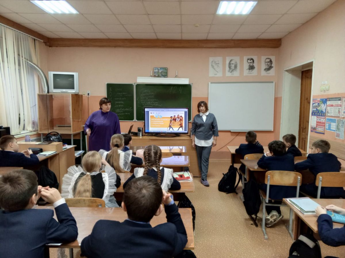 Педагоги-психологи Наталья Алферина и Яна Шеянова принимали участие в уроках «Разговоры о важном» на тему: «Как решать конфликты и справляться с трудностями?» в МБОУ «СОШ №9» и МБОУ «СОШ №10».