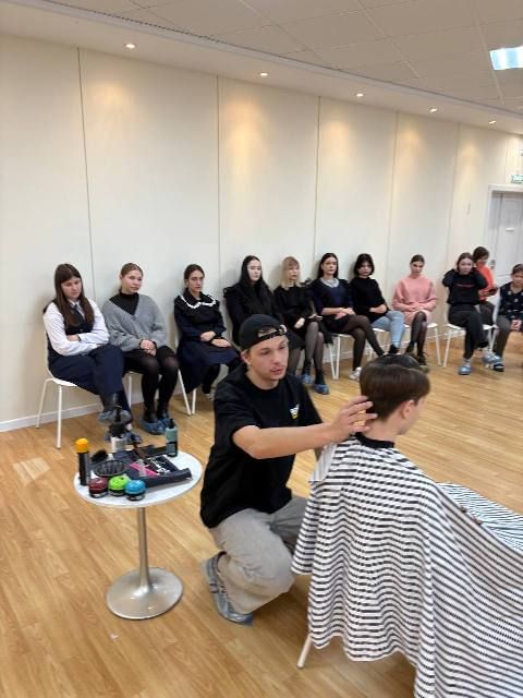 Мастер-класс провёл опытный тренер-барбер, Илья Пузырев, который с первых минут увлёк ребят в атмосферу творчества и профессионального мастерства. Он не просто показывал технику — он рассказывал историю профессии, её развитие от старинных цирюлен до современных барбершопов, где барберинг стал частью культуры и стиля жизни.