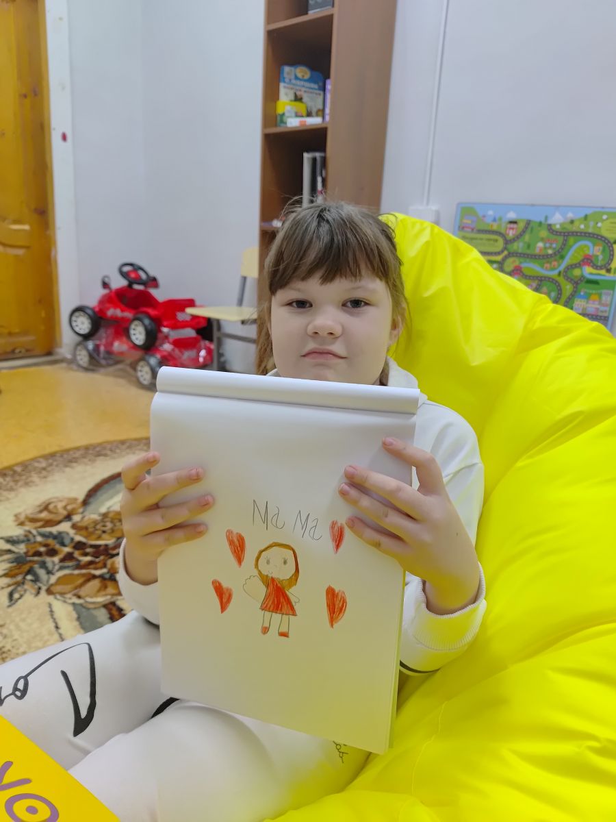 Приближается самый нежный и трогательный праздник- День матери. В преддверии этого праздника, в игротерапевтическом кабинете, дети с большим удовольствием и любовью создавали портреты своих мам. В своих работах ребята смогли передать безграничную любовь к самому дорогому человеку на свете- любимой маме.