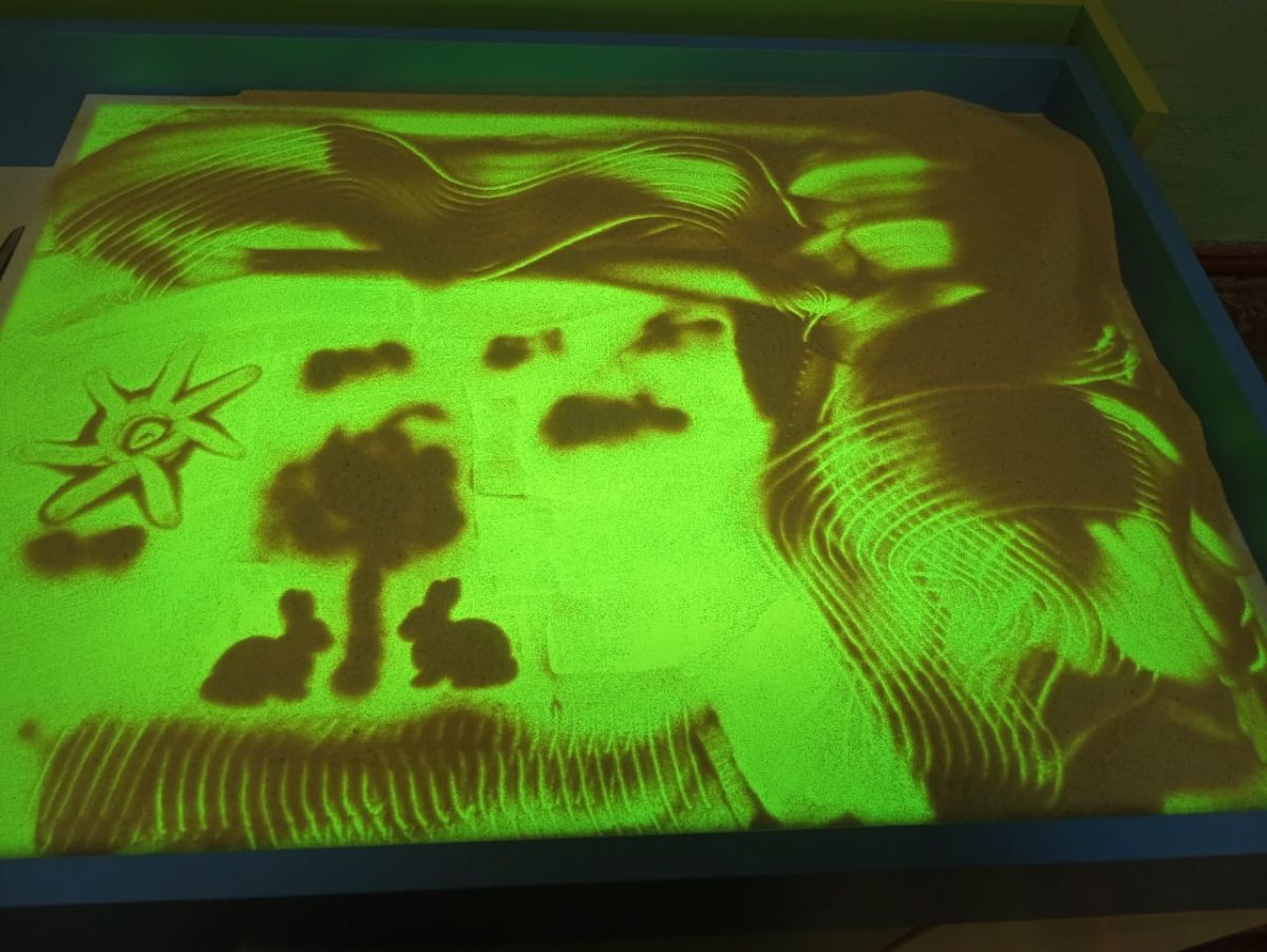 Песочная терапия успокаивает развивает моторику, наглядно образное мышление, воспитывает чувство уверенности с своих силах.