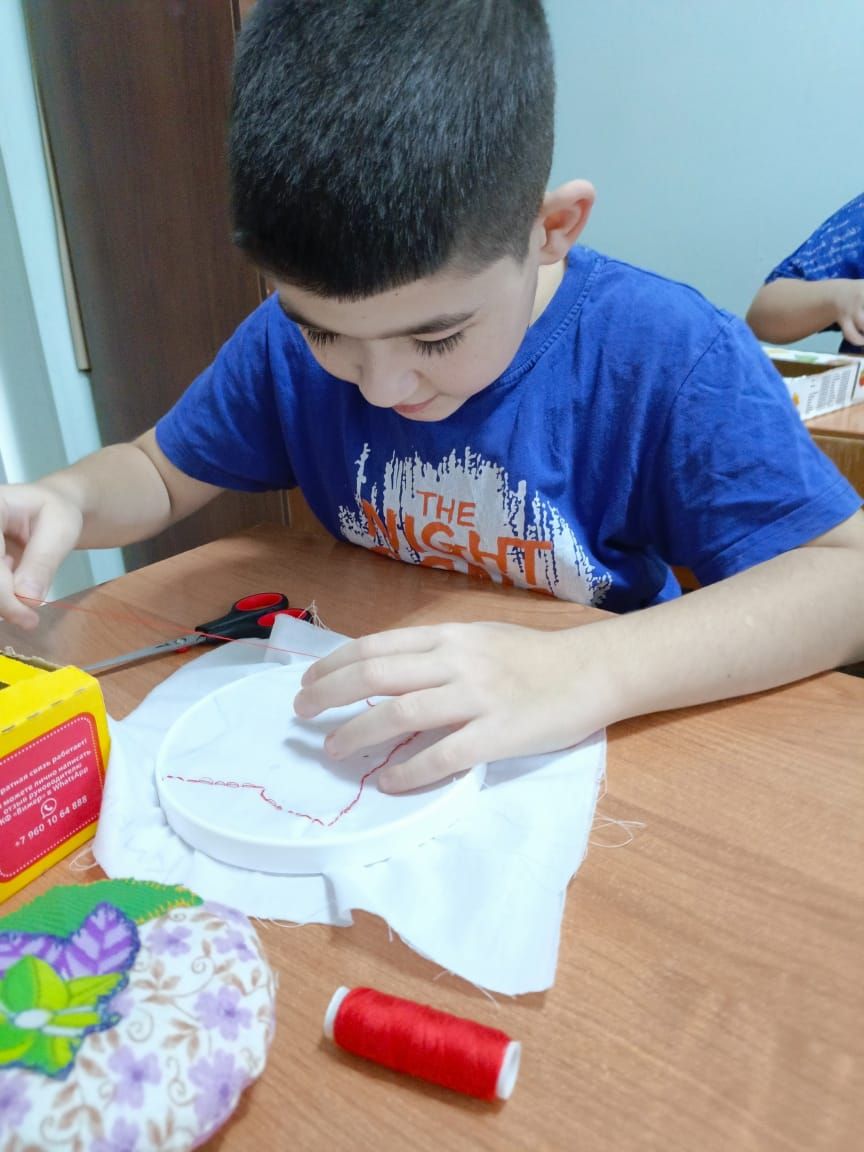 Цель: познакомить детей с швом «назад иголка» , активизировать знания о правилах техники безопасности при работе с ножницами и иглой;