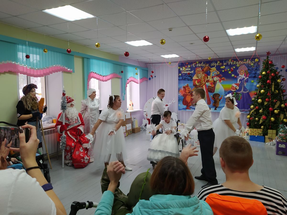 Гости устроили представление с Дедом Морозом, Снегурочкой и Бабой – ягой, вручили детям подарки, организовали им праздничный стол. Воспитанники подготовили для гостей номера художественной самодеятельности. Все были рады встрече и получили массу положительных эмоций. Гости оказали благотворительную помощь: средства личной гигиены, канцтовары, ледянки, бизиборды, памперсы, игрушки, жалюзи.