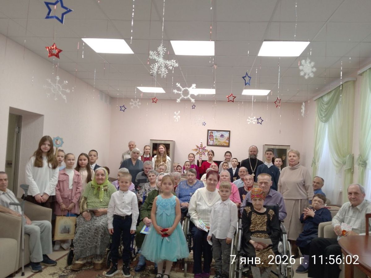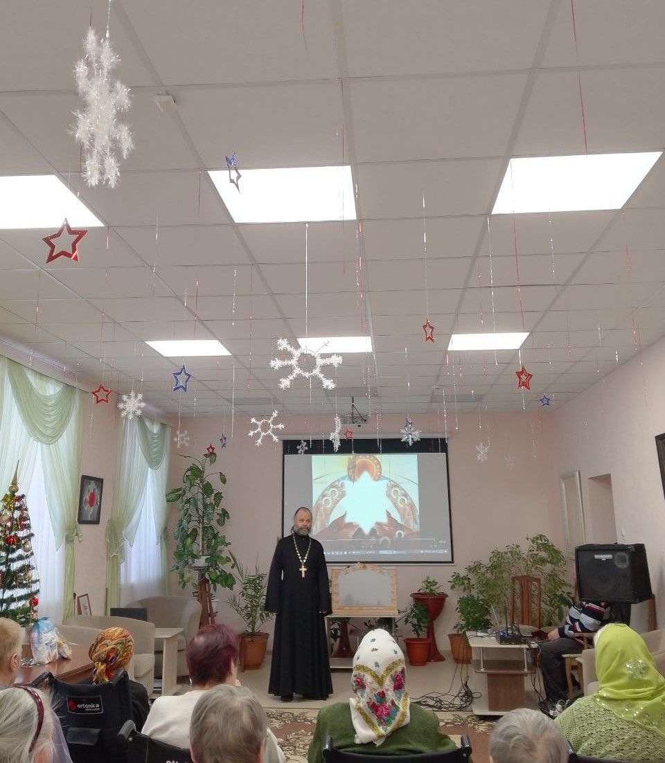 07.01.2026г. в ГБСУ СОН РМ " Ковылкинский дом - интернат для престарелых и инвалидов» приехало много гостей, Воспитанники Воскресной школы, отец Алексей и матушка Ирина.