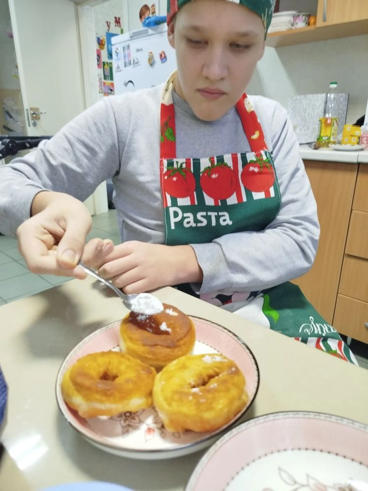 Цель: развитие кулинарных навыков у детей через приготовление пончиков.