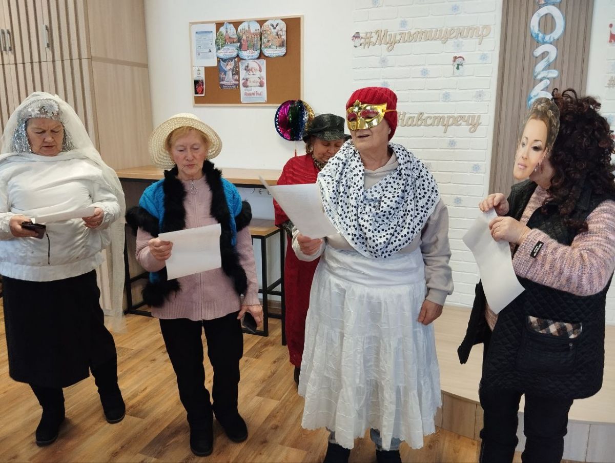 Пожилые люди, погрузившись в атмосферу русских народных обычаев, нарядились в красочные костюмы и, исполняя задорные песни-колядки, посетили Умётскую модельную библиотеку, подарив сотрудникам библиотеки добрые пожелания.