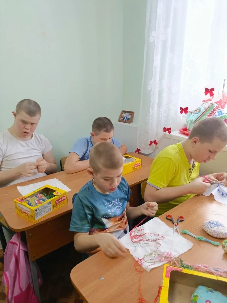 Вышивание салфетки приемом «вперед иголку» нитями мулине. Выставка детских работ