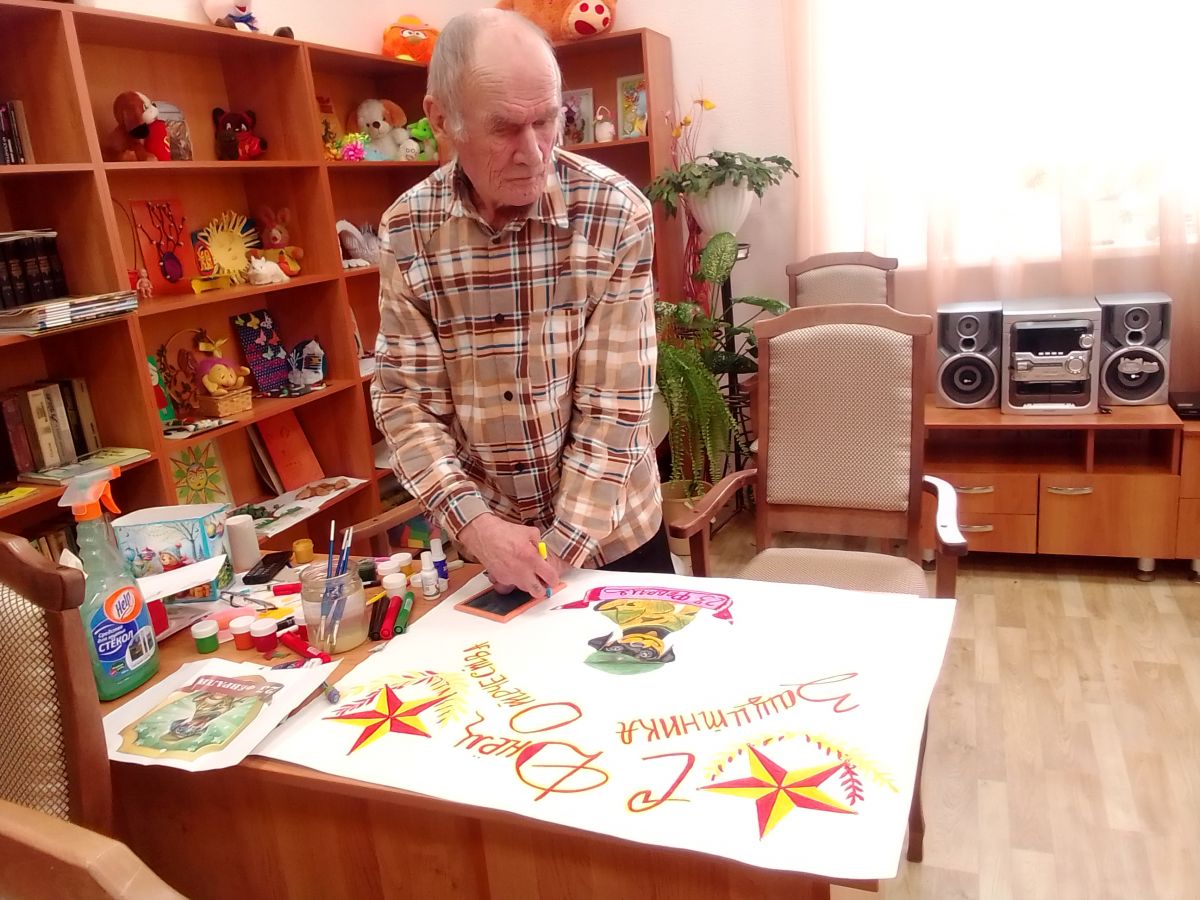 18.02.2026г. в ГБСУ СОН РМ « Ковылкинском доме - интернате для престарелых и инвалидов» культорганизатор Чеколаева Светлана Петровна совместно с получателем социальных услуг Мелайкиным Фёдором Ивановичем закончили оформление стенгазеты к 23 Февраля, к мужскому празднику.