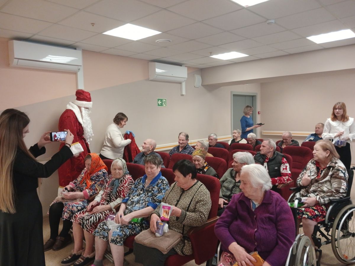 Студенты Электромеханического колледжа поздравили наших получателей социальных услуг с наступающими новогодними праздниками. Пели песни и загадывали загадки. Привезли подарки и вкусные угощения к чаю.