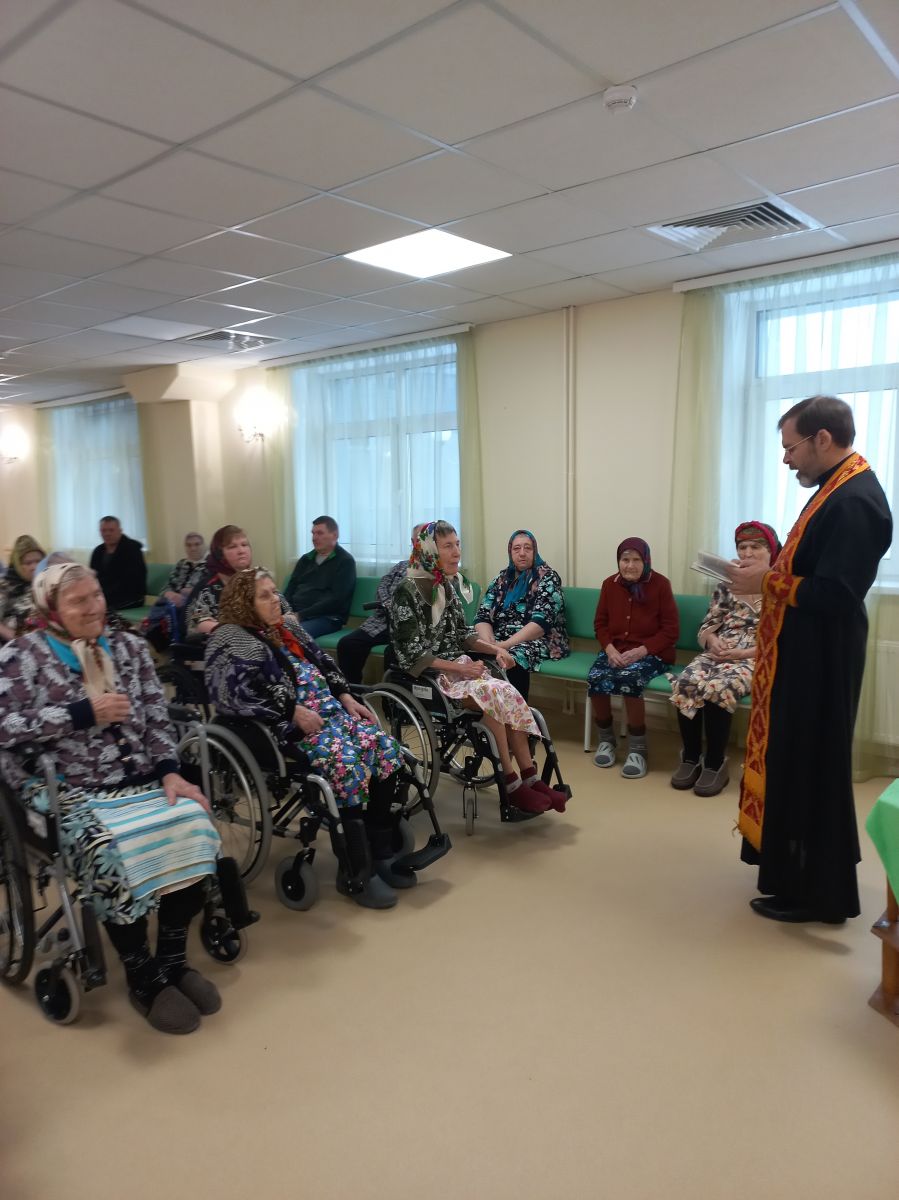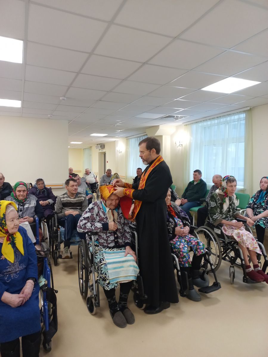 2 апреля 2026 года в Заречном доме-интернате для престарелых и инвалидов в канун Вербного Воскресения и в преддверии Светлого праздника Пасхи настоятель храмов Архангела Михаила и Живоначальной Троицы, иерей Сергий Денисенко совершил таинства Исповеди и Причастия получателей социальных услуг.