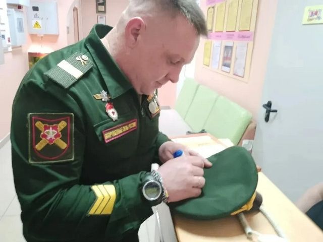 Сергей Александрович передал в дар музейного уголка «Герои и подвиги» свою военную фуражку.