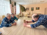 Наши проживающие с энтузиазмом развивают моторику и логику, играя в настольные игры. Особой популярностью пользуется «Падающая башня» — увлекательная игра, которая приносит массу удовольствия и помогает весело провести досуг.