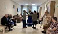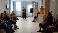 Солисты Сергей Елфимов и Вячеслав Носов, виртуозно владеющие баяном, поздравили жителей интерната с праздником, подарив им душевные песни под аккомпанемент.